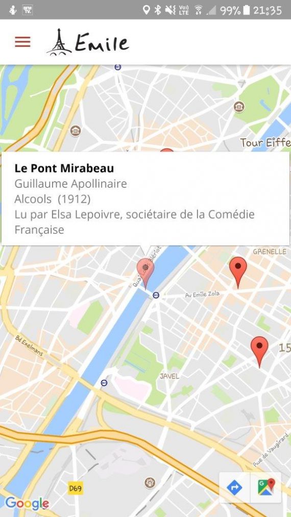 Une application recense de nombreux extraits de textes de littérature française, aussi bien des classiques que des contemporains faisant référence à différents lieux parisiens…