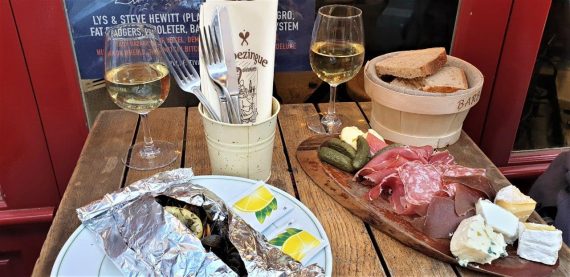 Face au restaurant bistronomique, “L’Os à Moelle”, “La Cave de L’Os à Moelle” fait à la fois office de table d’hôte et de bar…