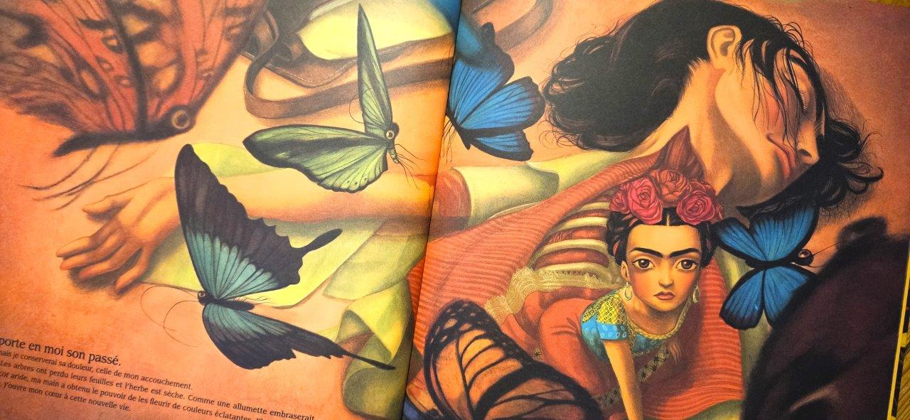 Pour lui rendre hommage, Benjamin Lacombe propose une immersion inédite dans le processus créatif de l’artiste. Une succession de pages découpées et un texte poétique nous entraînent dans les profondeurs de l’âme de Frida Kahlo. à la manière d’un recueil de pensées, le livre explore les thématiques qui sont chères à Frida : l’amour, la mort, la terre, les animaux…