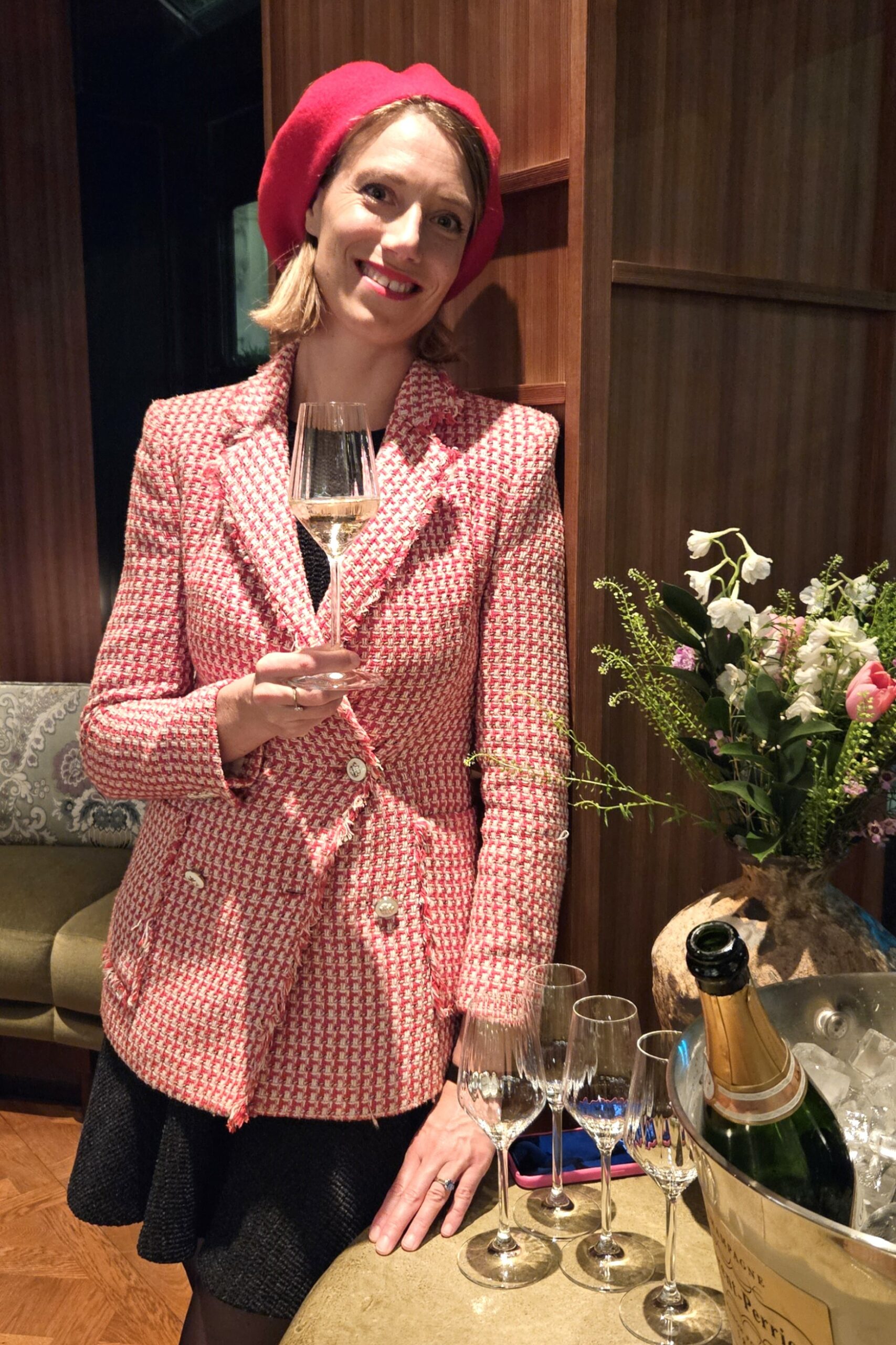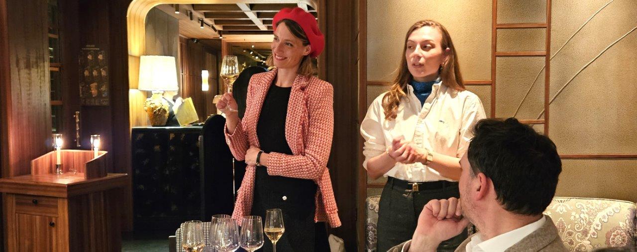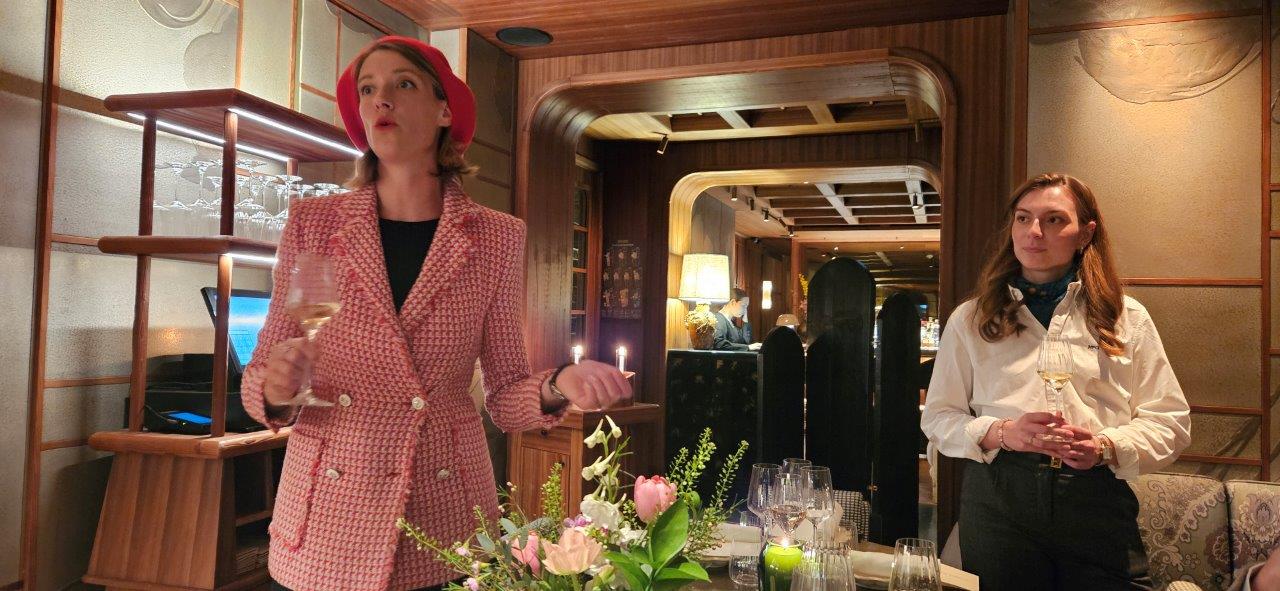 Margot de Rouge aux lèvres et Charlotte de la Maison de Champagne Laurent Perrier commencent la soirée par des rappels sur les spécificités de la Maison. La Maison Laurent-Perrier se caractérise par l’art de l’assemblage des cépages Chardonnay, pinot noir et meunier, des crus (villages) et des millésimes.