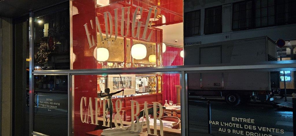 Le restaurant l’Adjugé se trouve dans l’Hôtel des ventes Drouot. L’hôtel des ventes se Drouot date de 1852, même si le bâtiment a été refait.