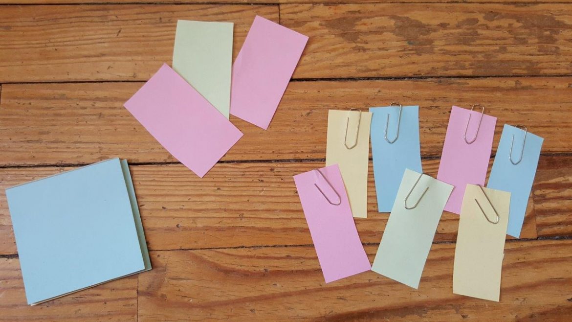 Découper dans des post-it ou feuilles de couleur 7 bande assez larges de papier