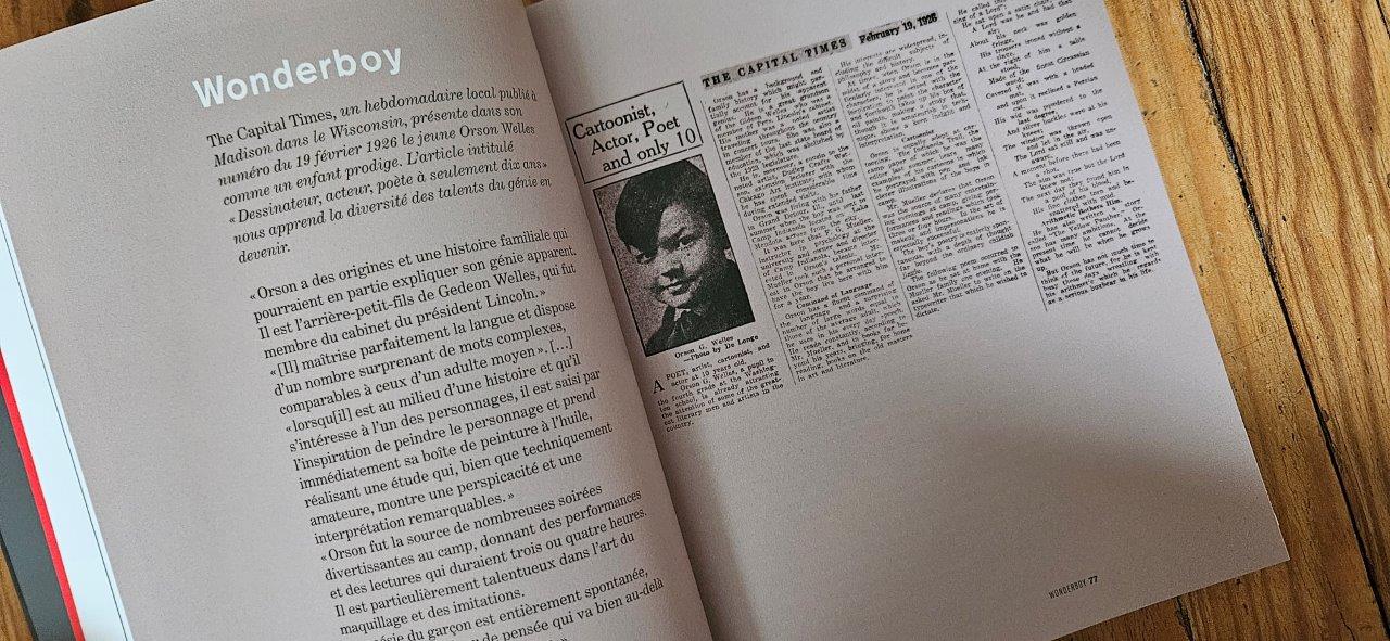 Cet ouvrage, qui accompagne l’exposition, commence par sa jeunesse, ses relations avec Hollywood et avec l’Europe, mais également la vulgarisation des œuvres de Shakespeare, sans oublier le légendaire film « Citizen Kane » qui a suscité de nombreuses réactions.