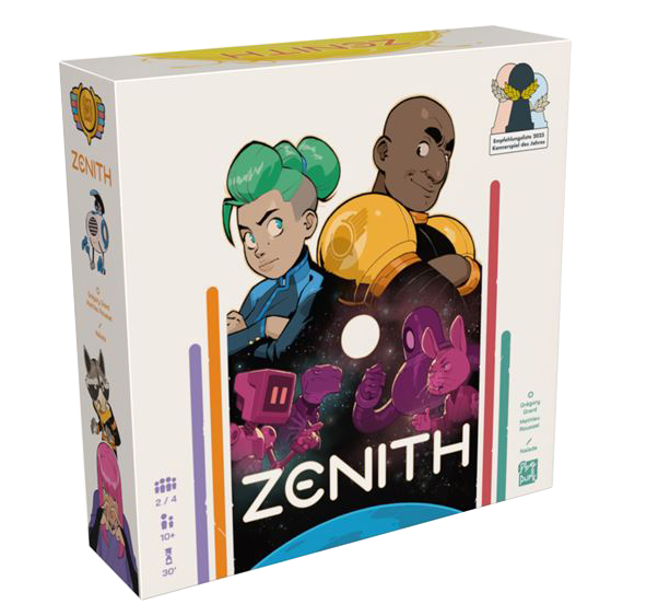 Dans ce jeu, chaque joueur incarne une famille de rats cherchant à construire une fusée pour atteindre la légendaire lune en fromage. Rassemblez ressources, activez raccourcis et devenez le roi des rattronautes ! Take time est un jeu coopératif de déduction à communication limitée dans lequel 2 à 4 joueurs collaborent pour résoudre des énigmes d’horloges mystérieuses en plaçant judicieusement les cartes autour d’un cadran. Zénith est un jeu tactique pour 2 ou 4 joueurs en équipes. Dans cet affrontement stratégique, chaque camp se lance dans une lutte pour s’imposer sur les 5 planètes du système solaire. Pouvoir, diplomatie et développement technologique : toutes les stratégies sont permises pour décrocher la victoire.
