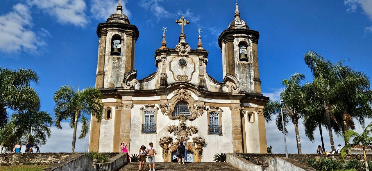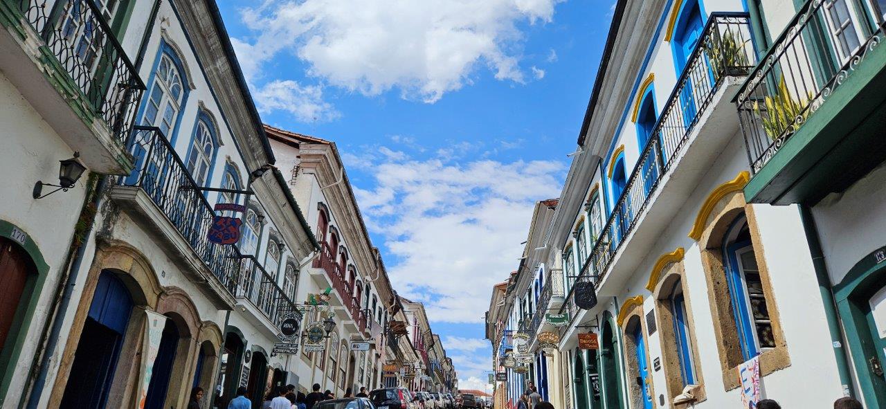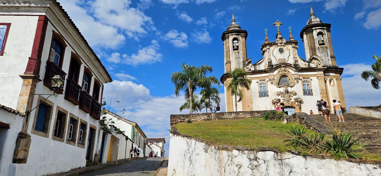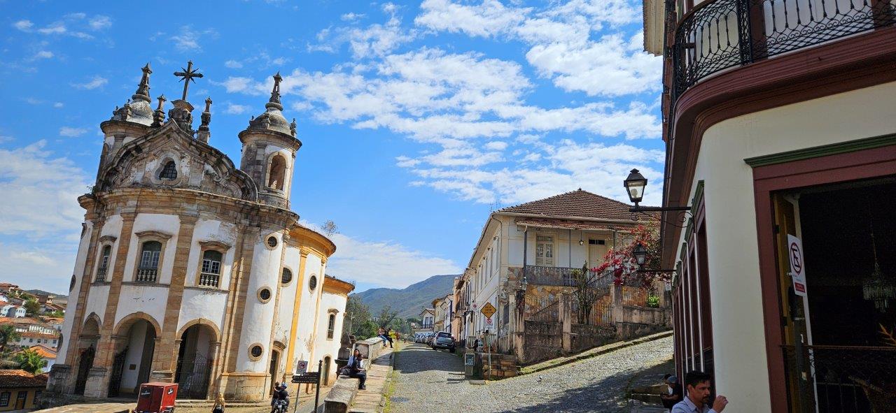 Fondée à la fin du XVIIe siècle par les pionniers, chercheurs d’or, Ouro Preto (connue auparavant sous le nom de Vila Rica) a été le centre de « l’Âge d’or du Brésil ». Inscrite au patrimoine historique mondial de l’UNESCO en 1980, Ouro Preto est ville coloniale de l’Etat du Minas Gerais au paysage vallonné. Située à 1000 mètres d’altitude dans la vallée de la rivière Tripui, la ville a été construite lors de l’apogée de l’exploitation minière. Le nom de la ville signifie “Or noir” en référence à l’oxyde de fer qui recouvrait les pépites que l’on ramassait dans les mines (métal noir découvert en 1693 et dont on s’est rendu compte plus tard qu’il était de l’or alluvial mélangé à du minerai de fer). Plaque tournante de l’or et du trafic d’esclaves au XVIIIe siècle, Ouro Preto s’est rapidement enrichie, donnant lieu à la construction d’églises baroques.