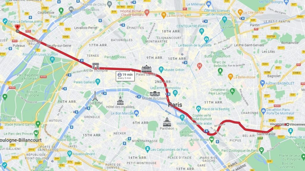 Le défi ? Partir du plus loin possible à l’ouest, à Nanterre, pour rejoindre la Pyramide du Louvre en suivant une ligne la plus droite possible sur l’un des tracés les plus emblématiques de la capitale : l’Axe historique, ou Axe Majeur. Cet axe relie, en une perspective unique, plusieurs des monuments clés de Paris : l’Arche de la Défense, l’Arc de Triomphe, l’Obélisque de la place de la Concorde, l’Arc de Triomphe du Carrousel, et enfin la célèbre pyramide de Pei au Louvre. Un alignement majestueux pensé dès la Renaissance, renforcé par Le Nôtre puis Mitterrand, et qui reste la colonne vertébrale monumentale de la capitale.
